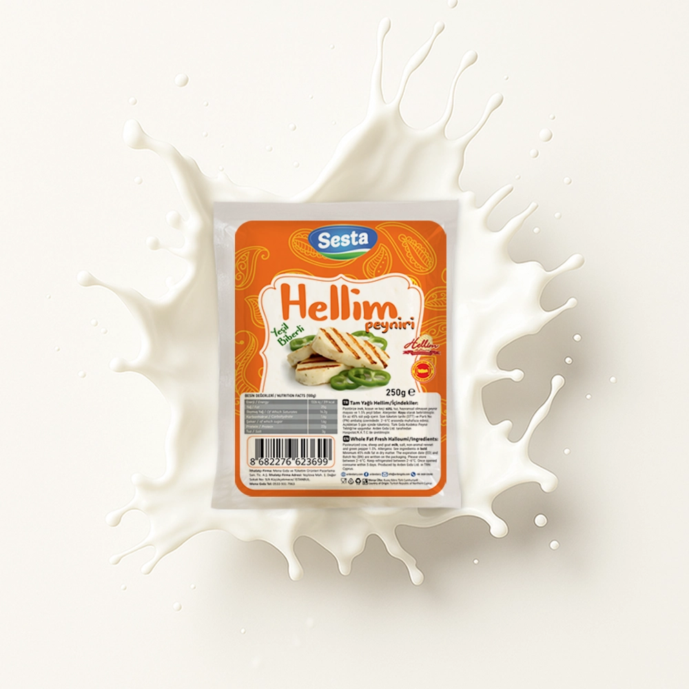 Whole Fat Fresh Halloumi/Ingredients: Pasteurized sheep, goat and cow milk non animal rennet and salt. Minimum 45% milk fat in dry matter. Keep refrigerated between +2 C and +4 C. Should be consumed before expiry date.